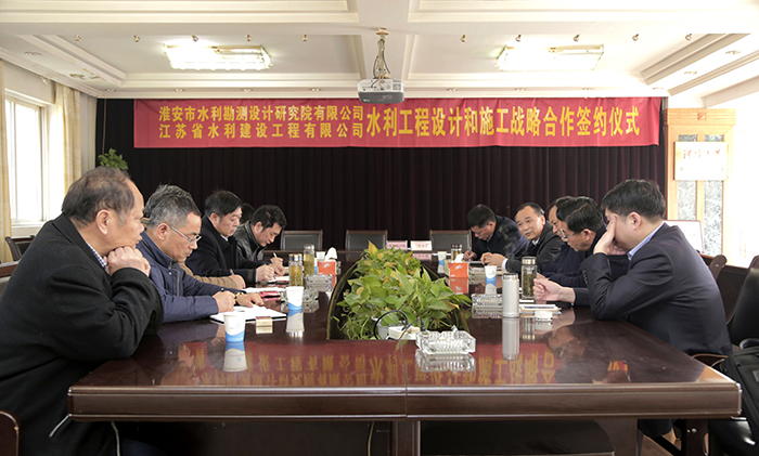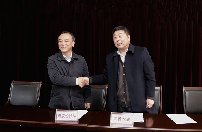 3月23日,水建公司、水機(jī)公司分別與淮安市水利勘測設(shè)計(jì)研究院有限公司簽署戰(zhàn)略合作協(xié)議,淮水院總經(jīng)理吳昌新、省工勘院有限公司董事長宋意勤、公司董事長時(shí)愛祥、水機(jī)公司總經(jīng)理鐘衛(wèi)華等10多位領(lǐng)導(dǎo)、專家出席簽約儀式。