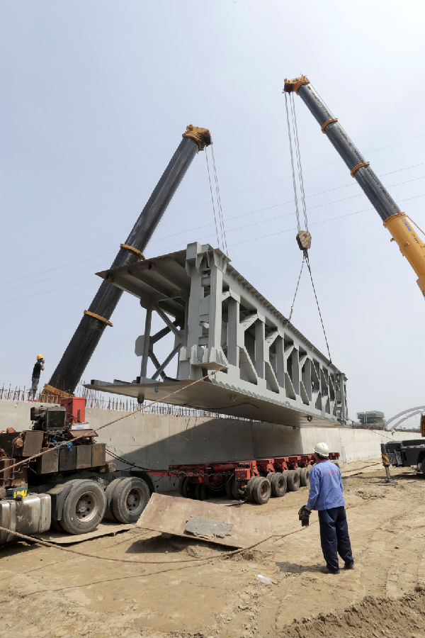 617日,由水機(jī)公司承建的芒稻閘項(xiàng)目上閘首閘門吊裝成功。閘門分兩片,單片重70噸,運(yùn)輸、吊裝難度非常大,為此,水機(jī)公司組織精兵強(qiáng)將,認(rèn)真查看運(yùn)輸線路、吊裝位置,制定切實(shí)可行的預(yù)案。吊裝現(xiàn)場(chǎng),隨著指揮哨聲的響起,兩輛運(yùn)送閘門的大型平板汽車駛?cè)胫付ㄎ恢,一臺(tái)500噸和一臺(tái)200噸的汽車吊緊密配合將閘門起吊、進(jìn)行空中轉(zhuǎn)體、側(cè)向移位、斜插門庫(kù)就位一氣呵成,猶如體操運(yùn)動(dòng)員精準(zhǔn)完美的表演。目前,下閘首閘門已完成制作進(jìn)入防腐階段。