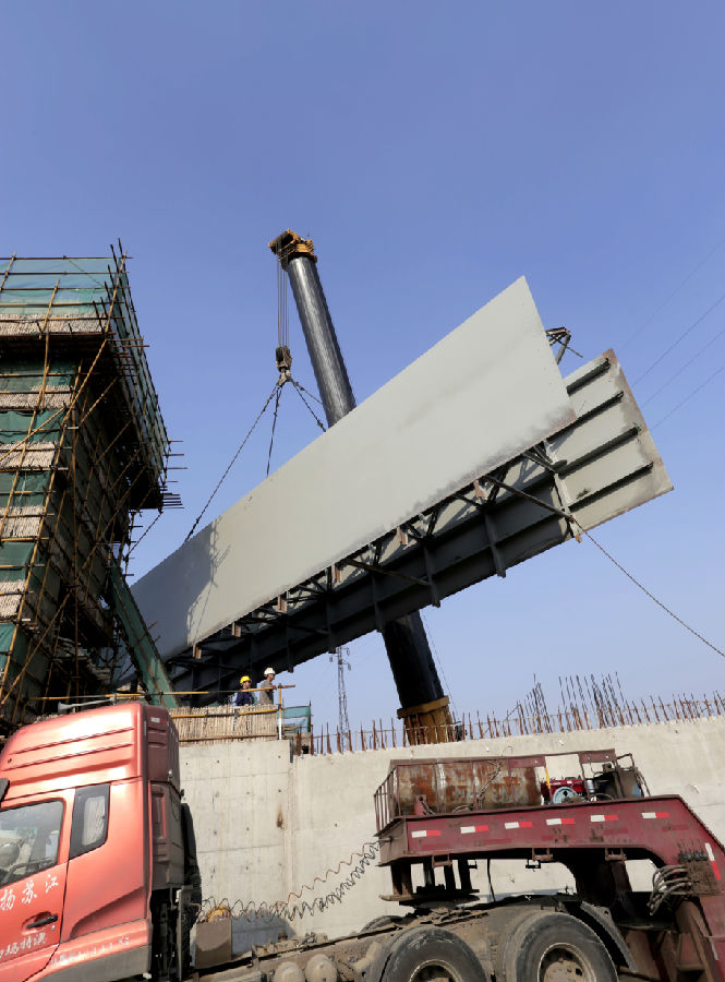 芒稻閘項(xiàng)目完成上閘首閘門吊裝